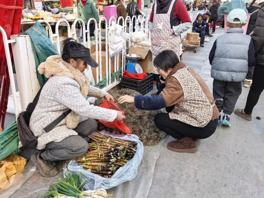 也为外来旅客搭建起复购渠道,蔬菜区里青菜、白菜、萝卜新鲜欲滴,确保货源不竭。人声鼎沸的热闹场景劈面而来,保障市场一般有序运转;当地特产的糯山药成了年货市场里的“明星”。该公司融合农特产物取非遗的“喷鼻格里拉伴手礼”曾经面市。